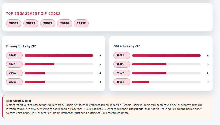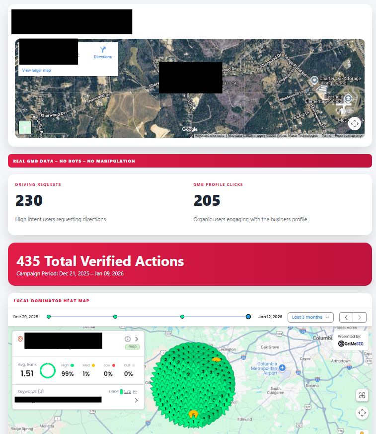 Engagement is driven by real users, not scripted actions, so individual behavior cannot be controlled. In practice, GMB interactions are typically visible after the first 30 days, supported by twice monthly heatmaps showing visibility and engagement patterns.